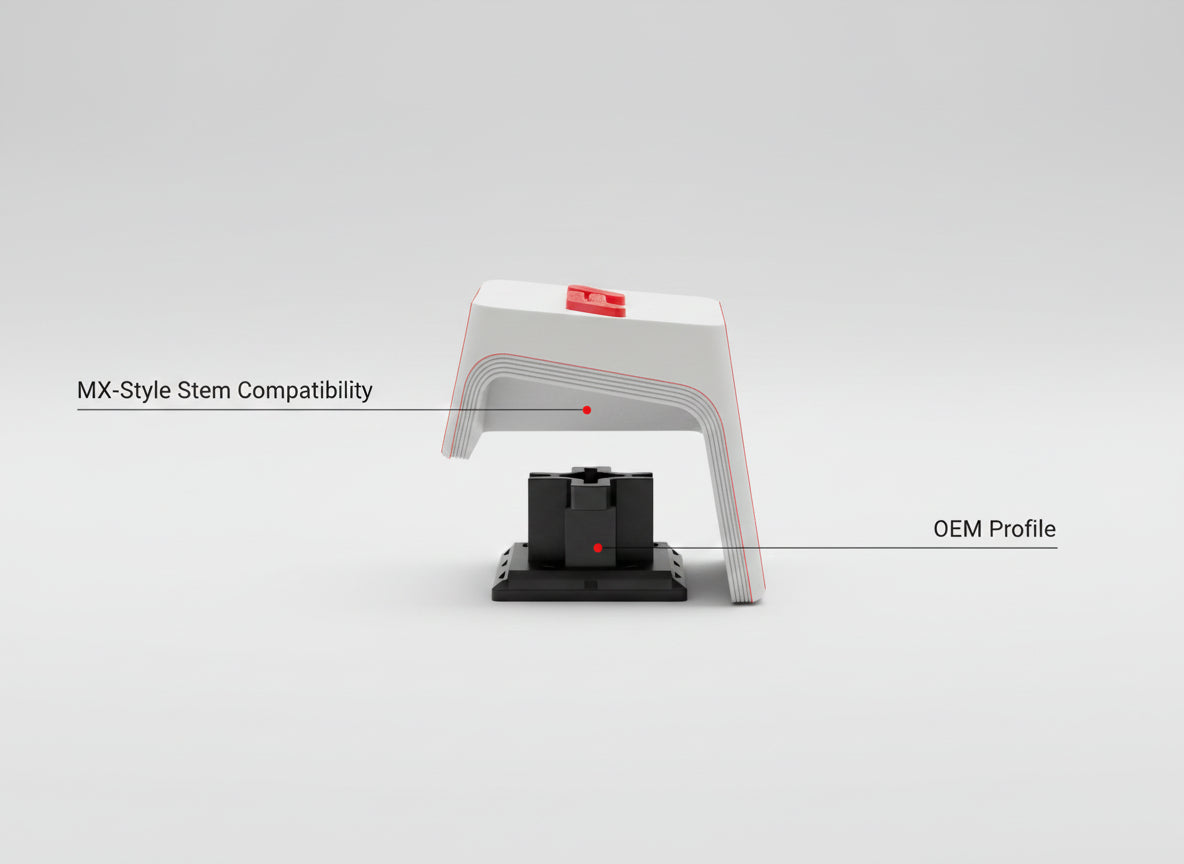 The OEM profile provides a comfortable, familiar typing angle, balancing performance and comfort for everyday use, gaming, or work.